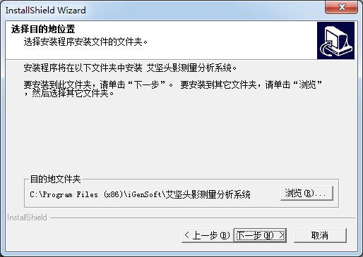 1.到本站下载安装艾坚头影测量分析系统,打开安装程序,点击浏览选择软件安装位置,点击下一步