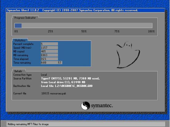 4、最后就是系统备份的详细过程,备份过程当中我们只需静静等待备份完成即可,如图所示: