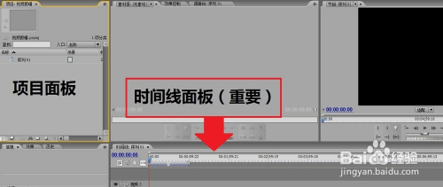 3.注意项目面板和时间线面板,我们剪辑要用到的两个面板