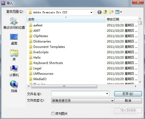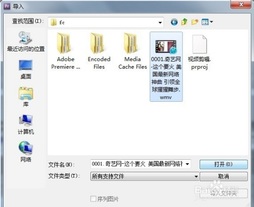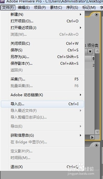 4.在项目面板导入视频有三种方法:1. 选择文件→导入命令。2. 双击项目面板(空白处) 3. Ctrl+I快捷键