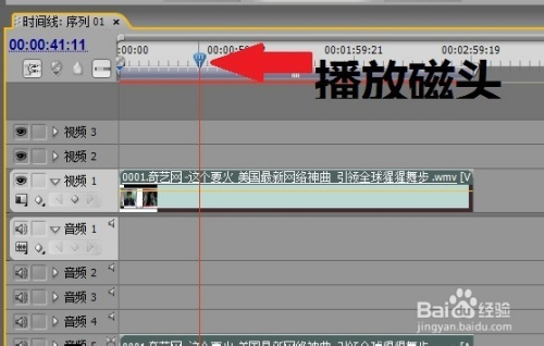7.拖动播放磁头在节目,在面板可以查看视频,点击一下播放按钮可以预览播放视频