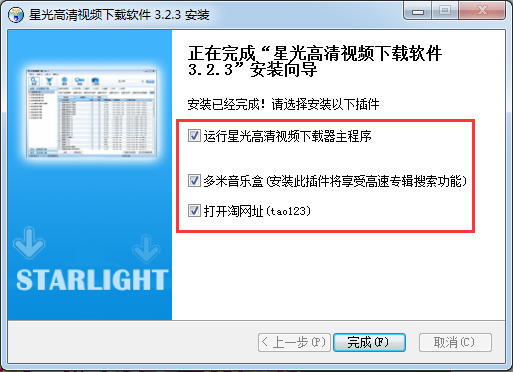 5.软件自带以下插件,自行选择,点击完成软件安装成功