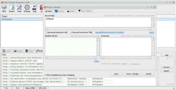 光行资源网提供的GSA Content Generator是一款功能强大,专业出色的内容生成器。软件内置微调器,能够同时为多个项目生成内容,而且速度很快,我们只需要点击几下鼠标即可缩短为项目生成可读内容的整个过程。由于其典型的基于向导的安装程序,它可以以最少的麻烦部署在您的计算机上。第一印象可能不是一个非常令人信服的印象,特别是基于它有点过时的用户界面。