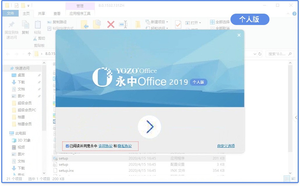 永中Office 2019个人版安装教程界面
