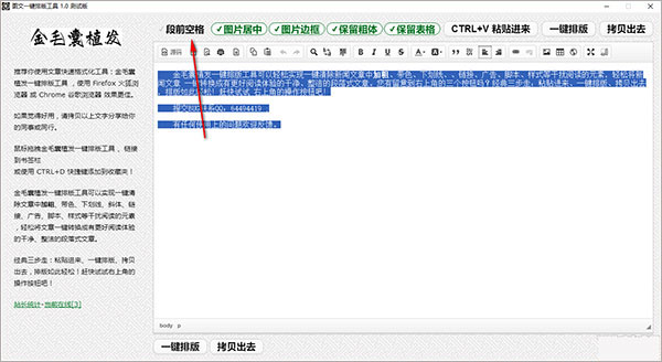 将需要排版的图文复制到图文一键排版工具界面中,然后进行一些操作;
