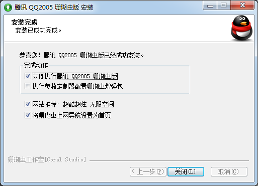 5.最后点击关闭即可,软件安装完毕,注意默认选项