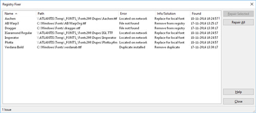 专业版MainType将自动检测字体注册表问题,例如丢失和重复安装的字体。然后,只需单击鼠标即可解决这些问题