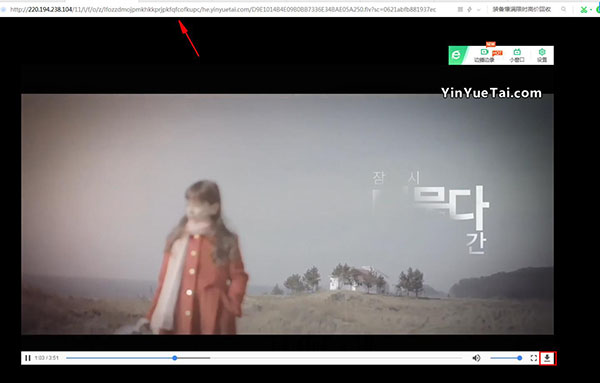 5、复制到浏览器,鼠标移动到播放界面,点击右下角下载按钮即可开始下载视频。