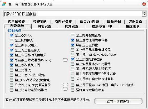 1.可禁止聊天,禁止QQ,禁止MSN,禁止淘宝旺旺,等一切聊天工具运行;