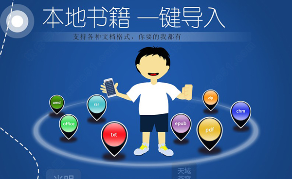 2、速度超快的支持txt,epub,pdf,office,chm,umd,zip,rar文件格式阅读.