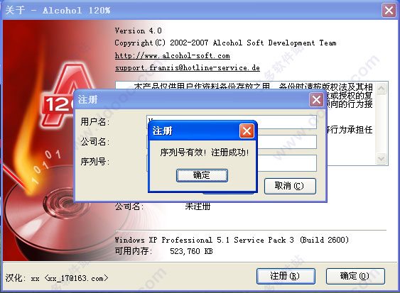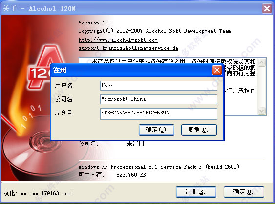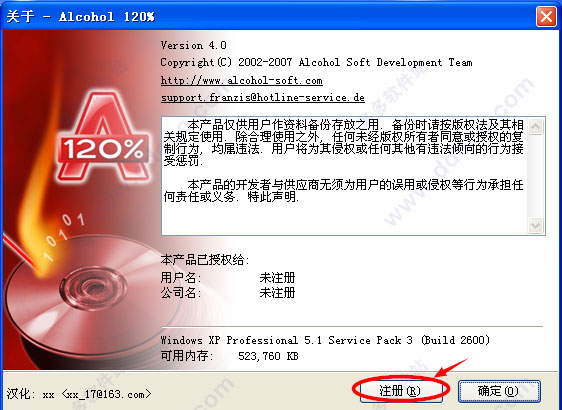 5、按一下【Next】?o接着依指示以一般安装方法?o完成安装,启动酒精120%,选择【注册】