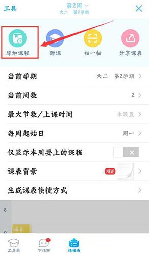 4、找到第一行图标中的“添加课程”,进入到课程表配置界面