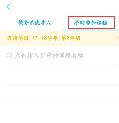 6、如果通过教务系统导入了课程表之后,发现部分课程缺失,或老师要求修改一些课程。可以选择“手动添加课程”也是选择你当前自己的学期,然后在下面找到自己缺失的课程,添加到课程表上