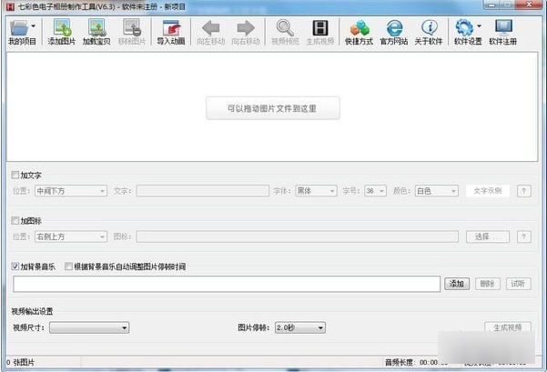 七彩色电子相册制作工具是一款绿色免费的专业化电子相册制作软件,七彩色电子相册制作工具专业版功能强劲,支持将多张图片制作成带多种播放特效和背景音乐的mp4视频。使用七彩色电子相册制作工具制作电子相册,制作视频非常的方便。