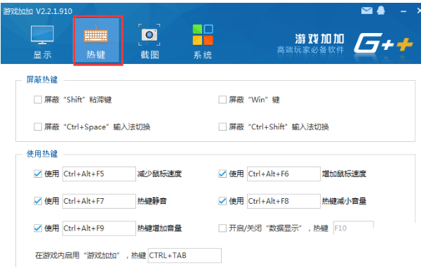 2、游戏加加热键功能