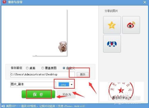 点击右上方的;保存与分享”,设置保存路径,图片存储选png,点击保存,如图所示: