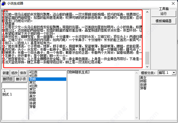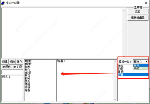 1、下载无需安装,双击即可运行使用小说生成器;2、首先可自定义选择下模板分类,并添加进来;
