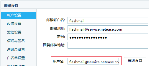 1. 请尝试在“邮箱设置-帐户设置”中将用户名修改为完整的邮箱地址,即带上@后缀(如默认已带上@后缀,则尝试删除@及其后面的字符)