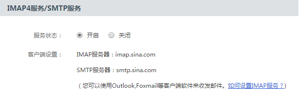 新浪邮箱,登录后选择“设置”,进入“帐户”页面,开启POP3 /SMTP、IMAP4/SMTP服务,保存修改