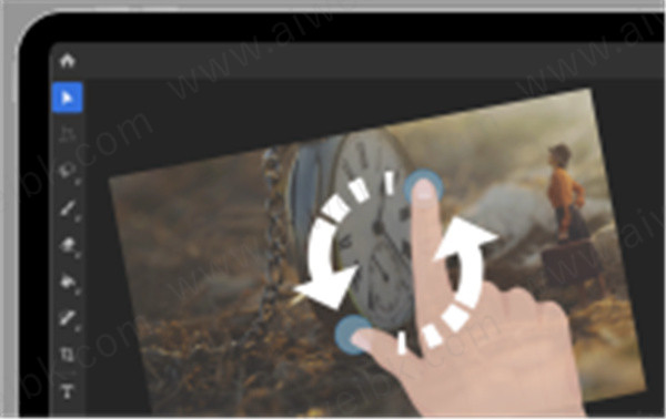 在iPad上以最自然的方向工作时,请使用直观的两指手势旋转画布。