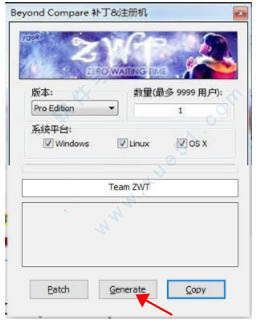 4、以上操作完成后我们回到注册机界面,选择Generate按钮生成注册码序列号