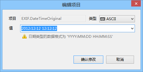 8、用同样的方法可以修改“修改时间”和"数字化时间"两项,这里不再详述;