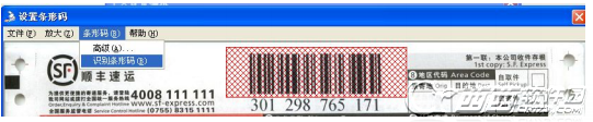 在此界面中点击“文件”菜单打开一张扫描样张。并用鼠标划定一个条码识别区域,尽量框选大一点,即保证所有扫描的纸样,条码位置都在所框选的区域内,否则无法识别。