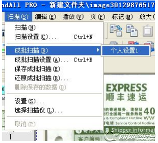 1.打开 ScandAll Pro 后,点击菜单栏中的“扫描”菜单,选择“成批扫描设置”。