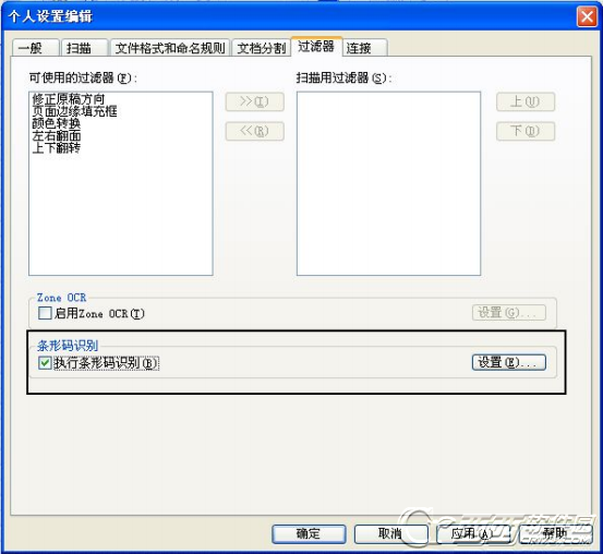 7.在个人设置选项卡中选择“过滤器”,在过滤器界面中将“执行条形码扫描”勾选