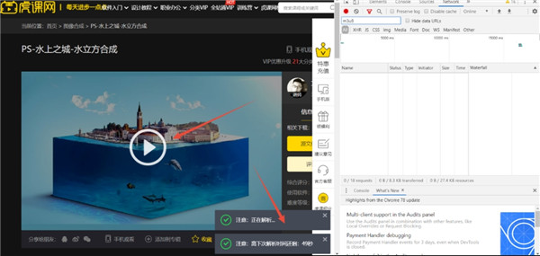 6、插件除了支持解析视频外,课程所涉及的素材或源文件也支持下载。需要注意的是素材必须点击视烦番放,解析成功后才能正常下载。