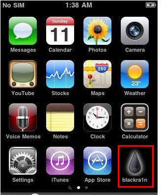 4、一旦iPhone或iPod Touch重启完成,越狱也就完成了,你将在iPhone或iPod Touch的桌面上看见黑雨blackra1n的图标。