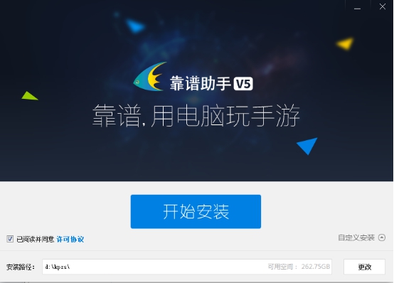 2、进入靠谱助手软件安装界面,可点击查看“许可协议”,并选择安装的本地路径。确认无误后,点击“开始安装”按钮。如图所示: