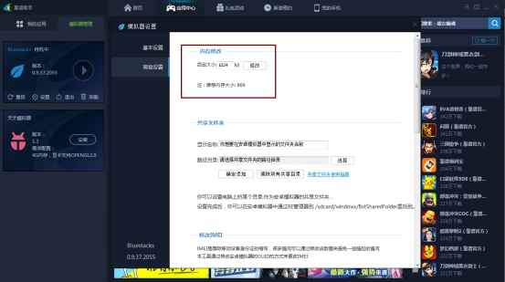②、增加安卓模拟器(BS)自定义内存分配设置。