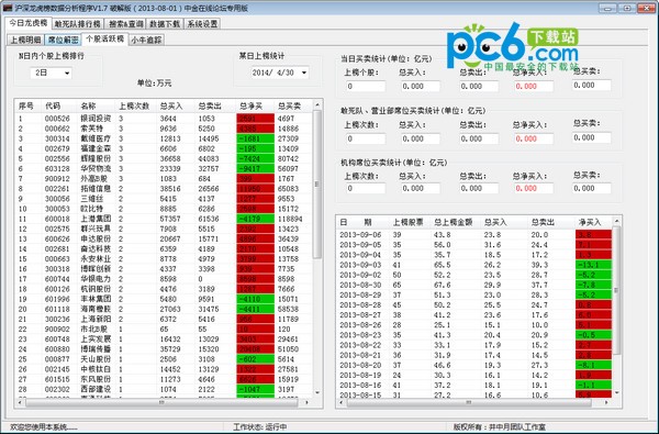 沪深龙虎榜分析软件在龙虎榜数据的统计、分析、查询功能比较强大,用过的龙虎榜软件比较好,淘宝卖500元,有点贵。花了几天,破解了此版本的使用次数和使用时间的限制功能,对部分文件进行精简删除,运行速度更快。