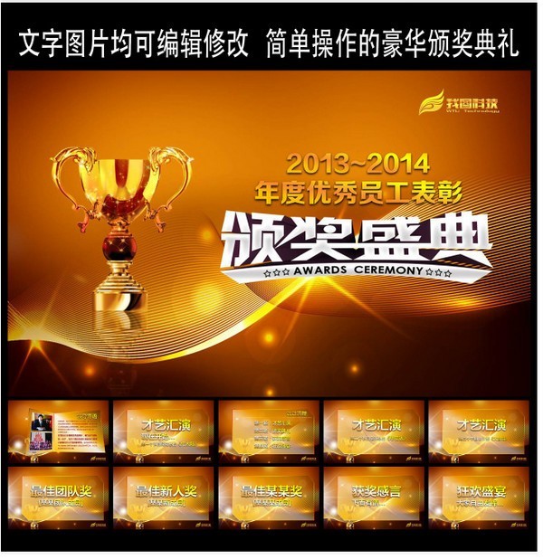 颁奖典礼颁奖盛典ppt为公司颁奖典礼提供了非常不错的视觉效果,ppt使用也很简单,你可以按照自己需求来进行修改。需要的小伙伴赶紧下载哦!