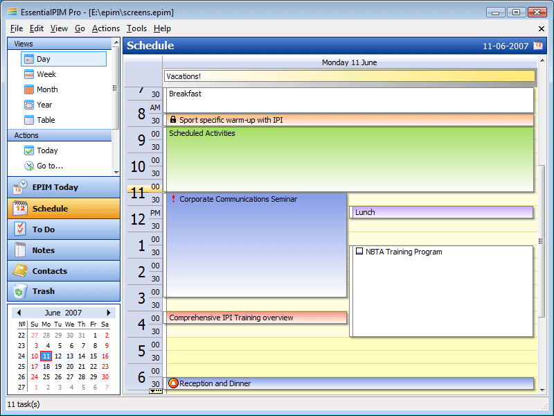 EssentialPIM是一套非常不错的个人时间日程安排软件,它有着非常便捷的实际操作插口,让使用者可以针对所排定的行程安排一目了然,而每一个事件也都容许使用者开展夹档,让你能把比如大会?Y果、计划案等数据信息附加于该纪录中。往后面,使用者就可以同时对所填写的信息开展寻找,使你无论在什么时候都可以找出该事件产生时的一些特殊信息。