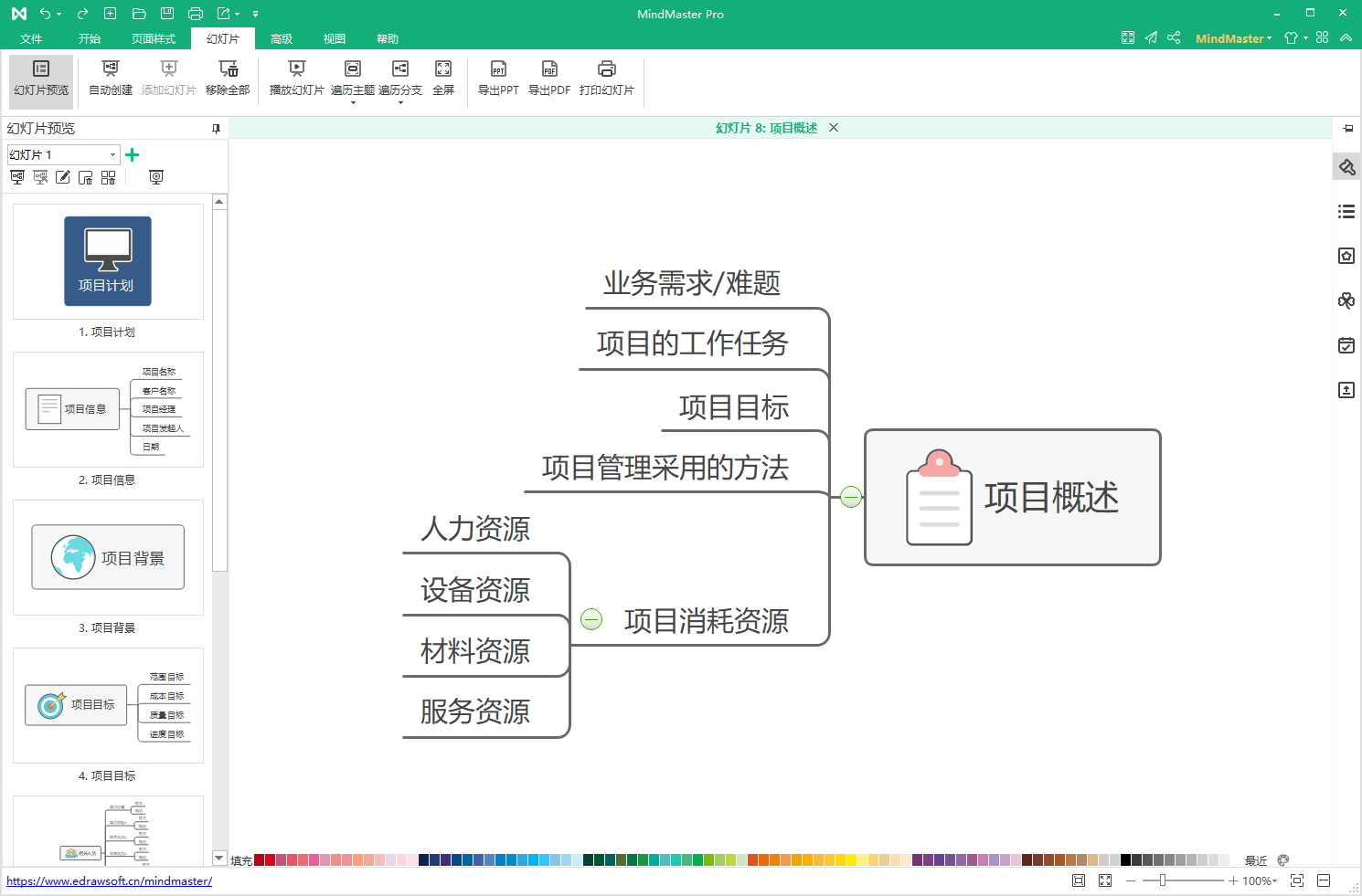 5、应用亿图思维导图MindMaster中的幻灯片作用,软件会将目前的思维导图主题开展分拆。假如挑选是系统软件自动生成,会依照父文章标题的顺序开展排序。软件也适用用户填加幻灯片。思维导图的幻灯片作用合适用户在做稿子演试应用,很便捷地将思维导图里的精粹?热菡瓜殖鋈ァ?