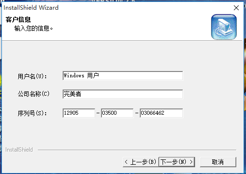 3、输入客户信息,用户名、公司名称和序列号,进行下一步,