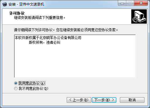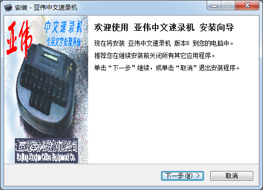 1.到本站下载安装亚伟中文速录机软件,打开安装程序,点击下一步继续安装