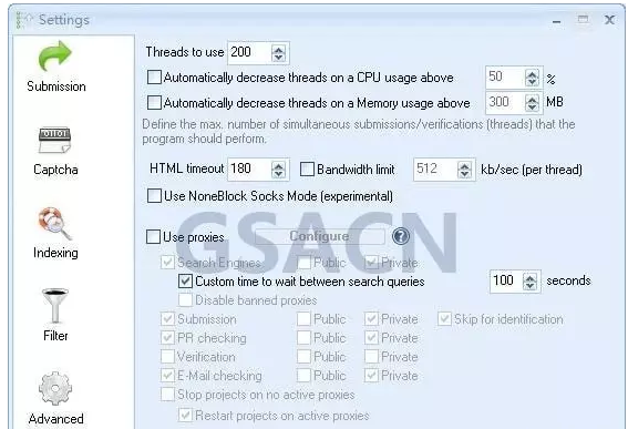 在此界面主要是设置代 理、验证码、Indexing等一些东西