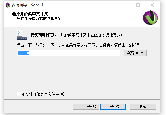 4、创建开始菜单文件夹,进行下一步,