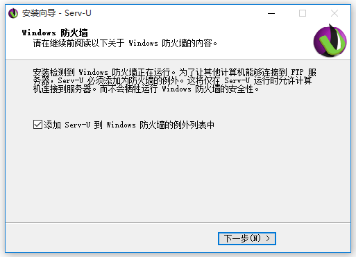 8、将Serv-U添加到Windows防火墙的例外列表中,软件安装完成。