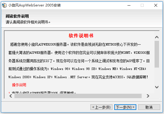 1、下载小旋风ASPWebServer,解压压缩包,双击.exe文件,根据向导操作,