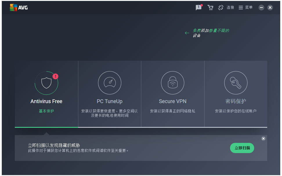 AVG Anti-Virus是一款来著名的杀毒软件,界面简约、功能强悍,它可以全面扫描计算机系统,杀死木马病毒,抵御间谍软件、广告软件,全面保护计算机的安全使用,本站免费下载AVG杀毒软件。