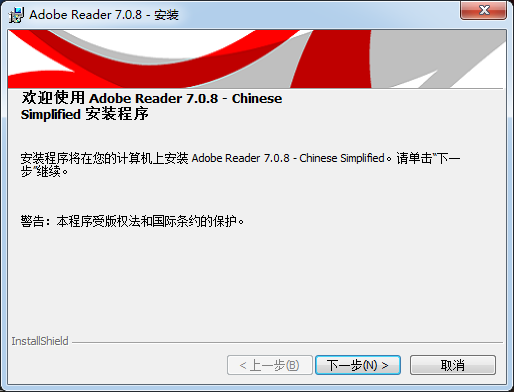 1、到本站下载安装adobe acrobat 7.0,打开安装程序,点击下一步继续安装