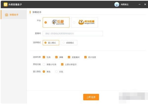 5、设置软件的其他功能,点击立即连接就可以统计直播间的信息