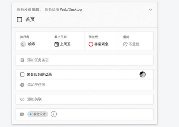 在任务板上,你可以很直观地和大家一起推动任务进展。针对每一个任务,你可以分解子任务、搭载附件、设定截止日期,而且也可以随时开展讨论