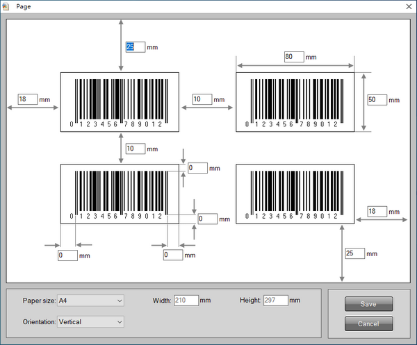 5、提供条形码标签的尺寸以及条形码之间的距离的设置,精度为0.1毫米