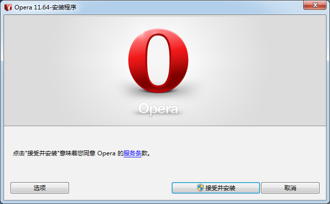 1、到本站下载安装Opera11,打开安装程序,点击接受并安装