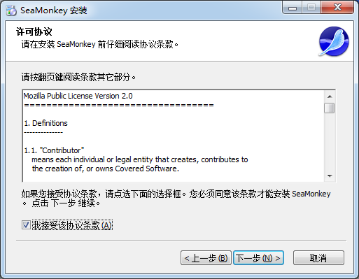 1、到本站下载安装SeaMonkey,打开安装程序,点击下一步继续安装